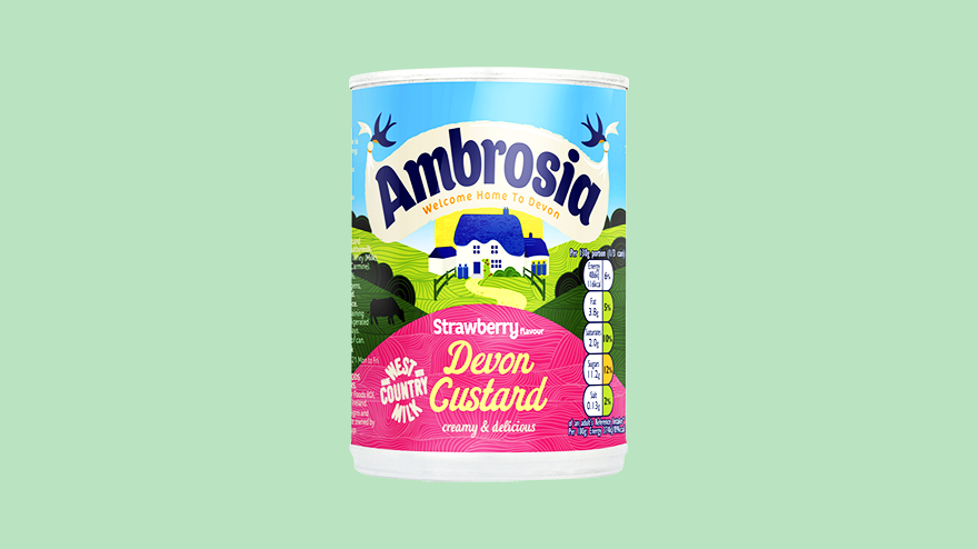 Ambrosia Ready To Serve Strawberry Flavour Devon Custard Can 400g